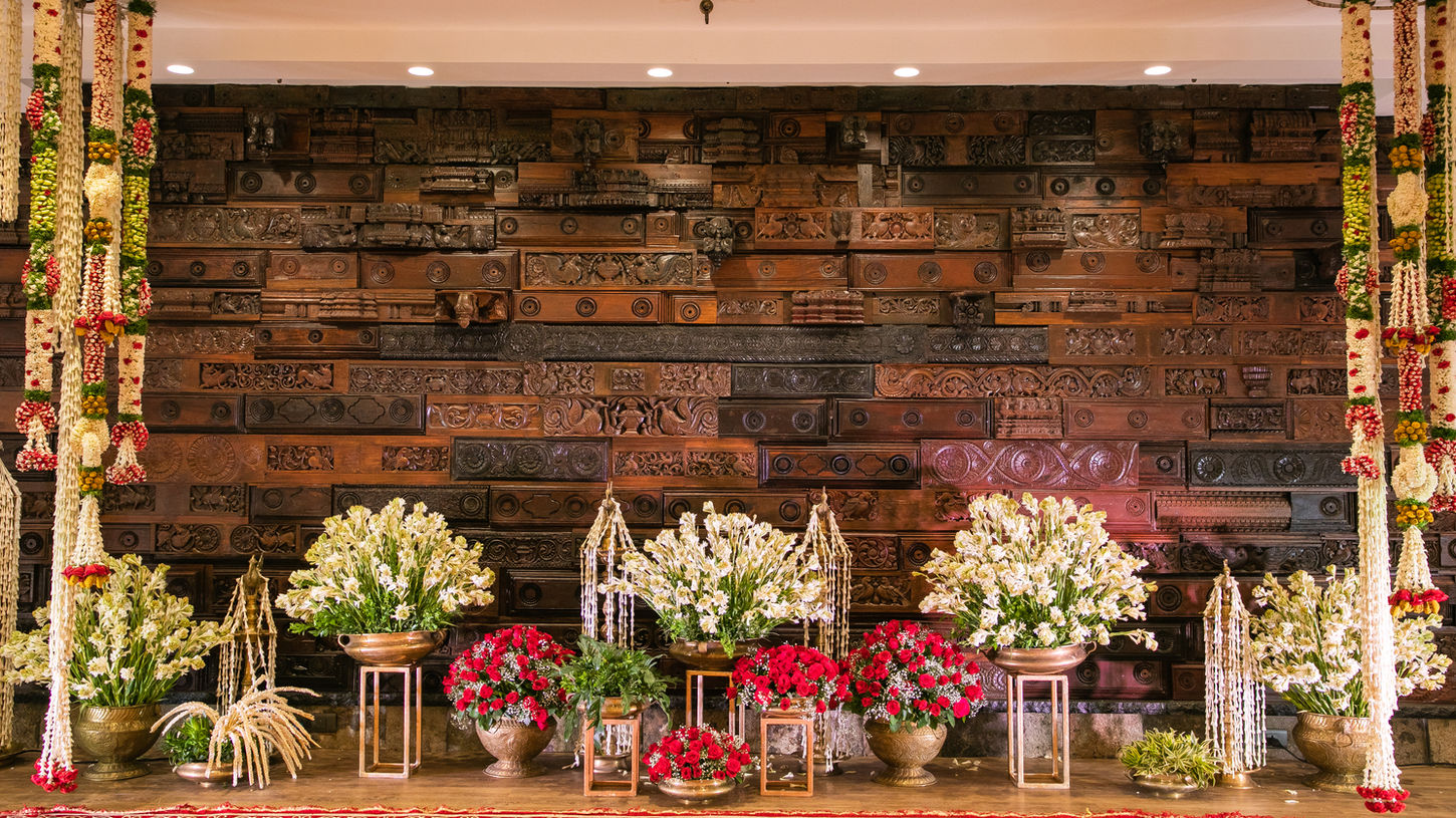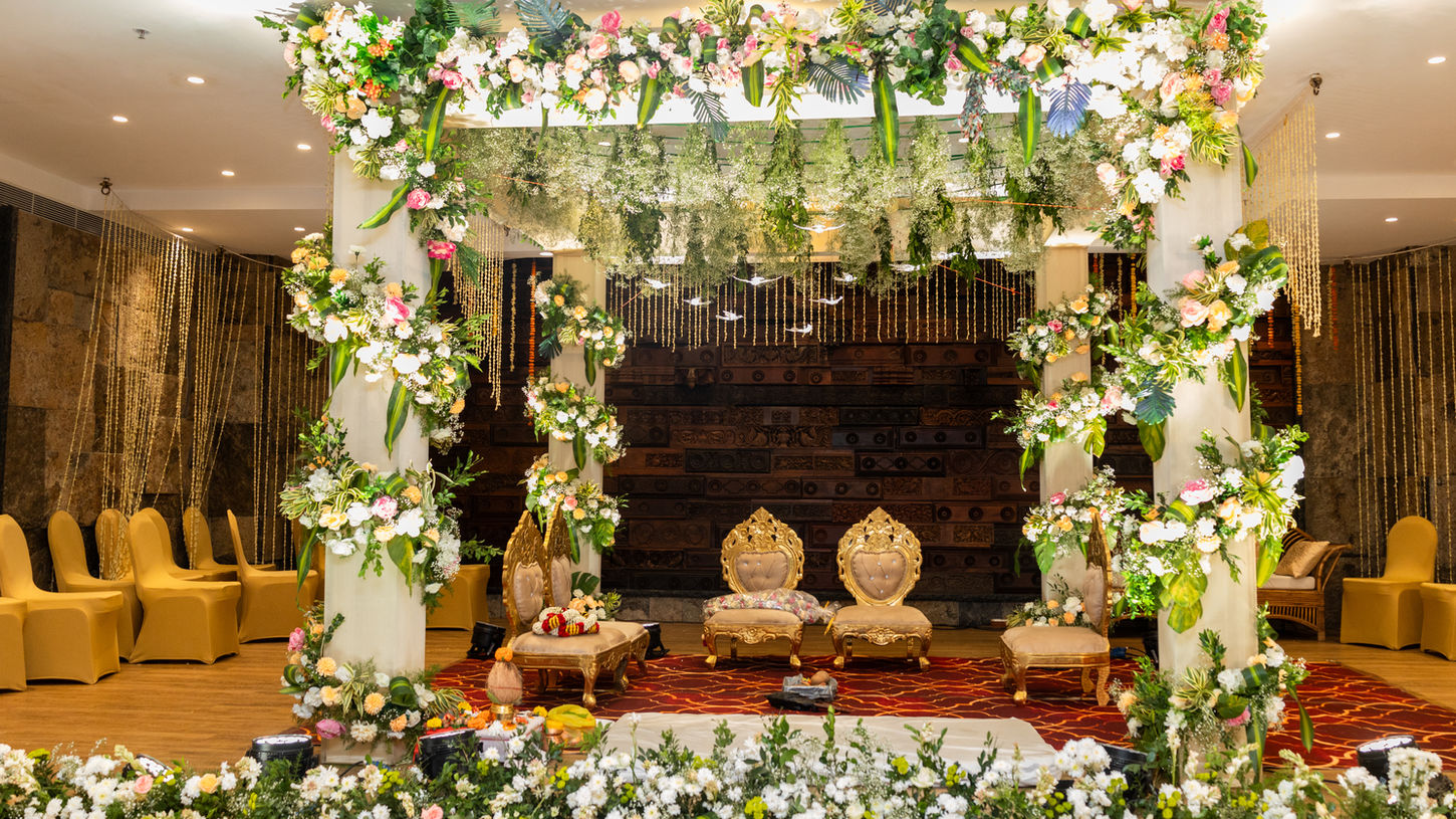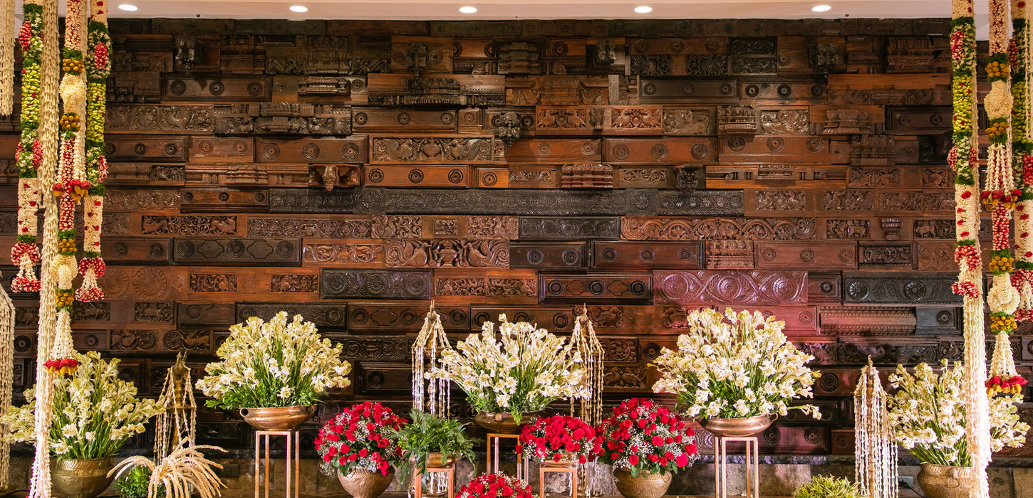 Priyam, one of the top luxury marriage halls in Chennai, is Illam Hospitality and Banquets' crown jewel. Our 15,000 sqft Event Pavilion accommodates up to 750 guests and expands to 1,200. Indulge in the epitome of elegance with delightful vegetarian and non-vegetarian feasts in our Dining Pavilion. Experience the magic with cutting-edge sound, lighting, and a stage backdrop inspired by traditional wood panels.